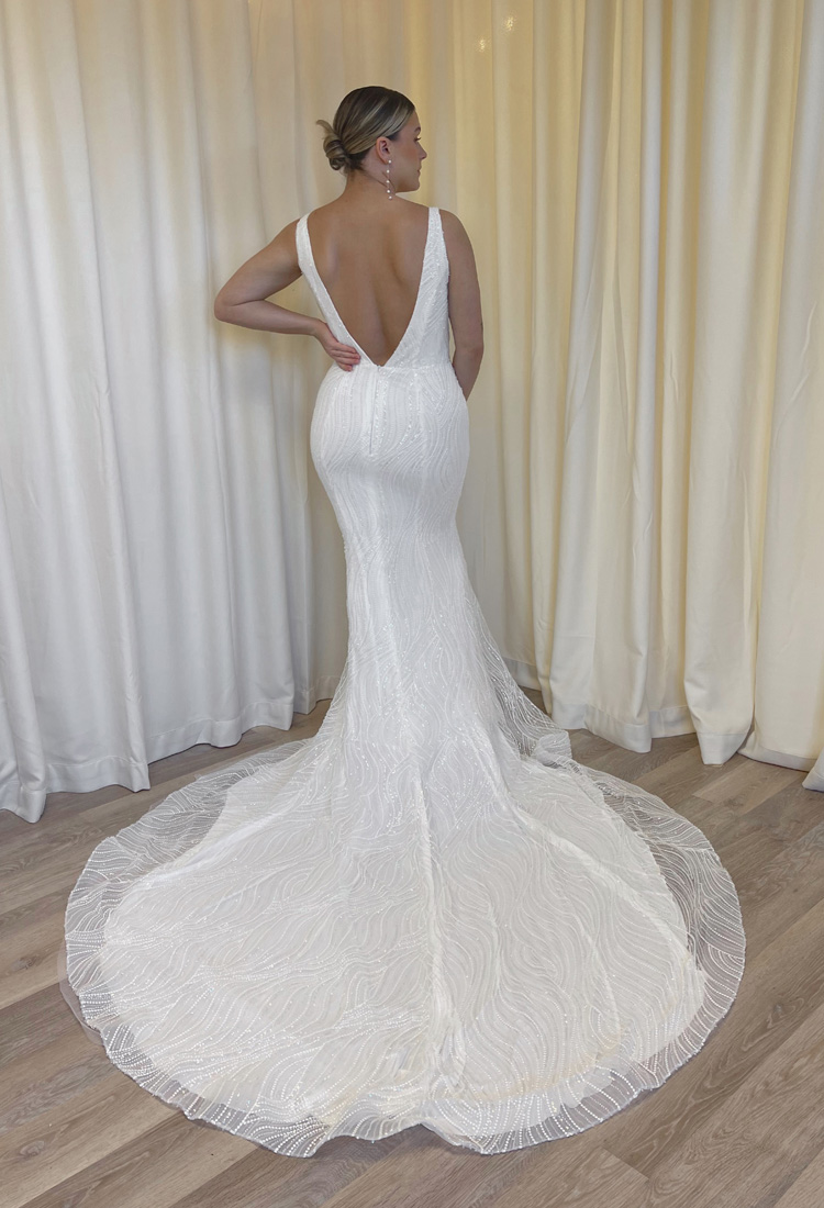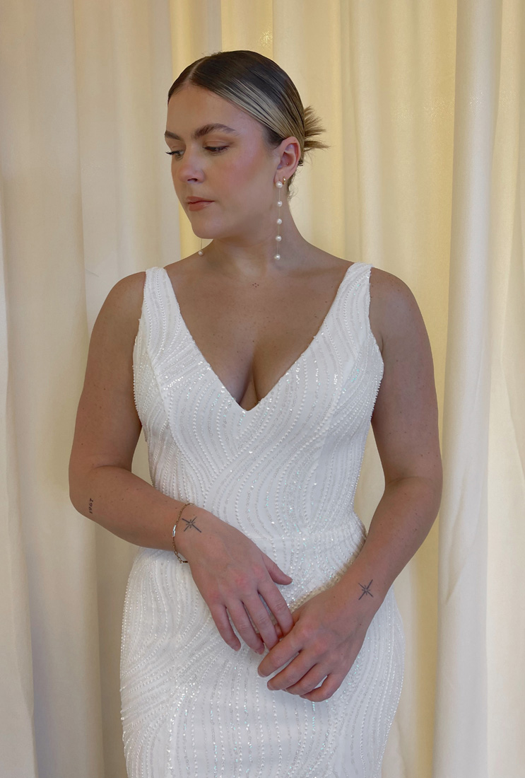 To determine if this gown will fit you, measure your bust, waist and hips (in Inches). See our easy guide on how to measure here