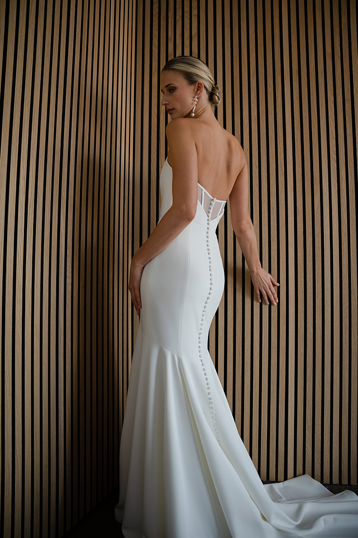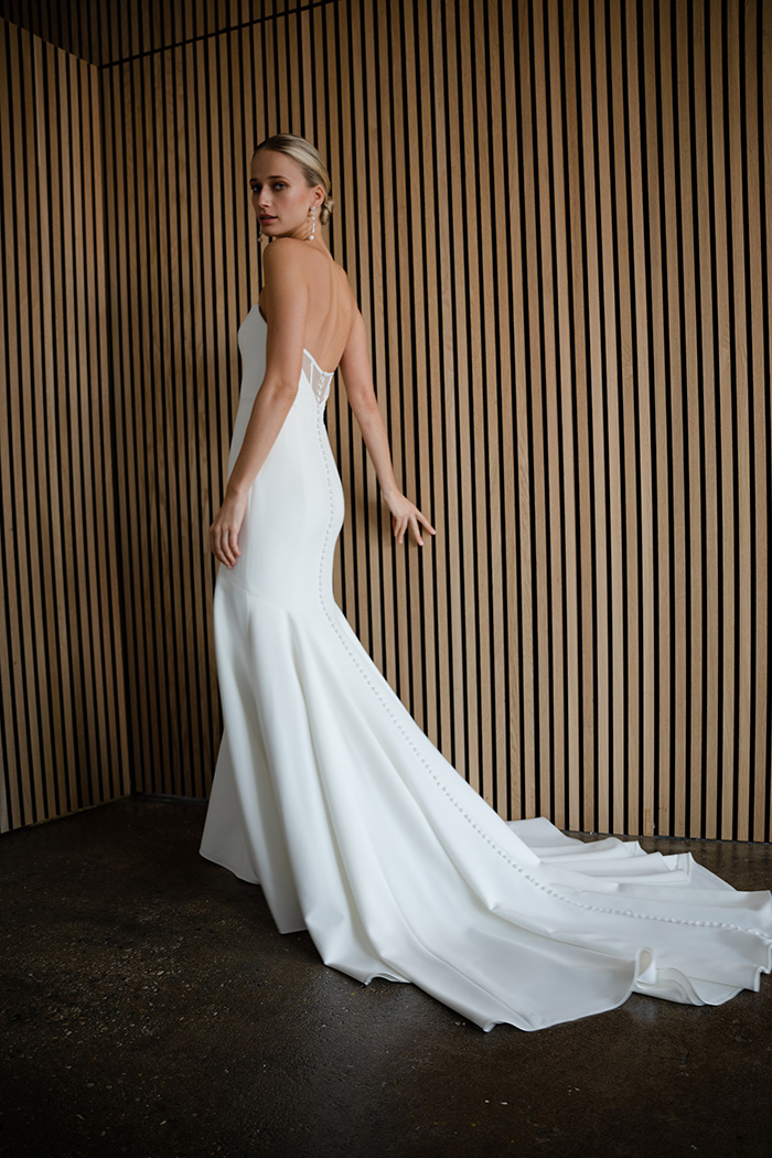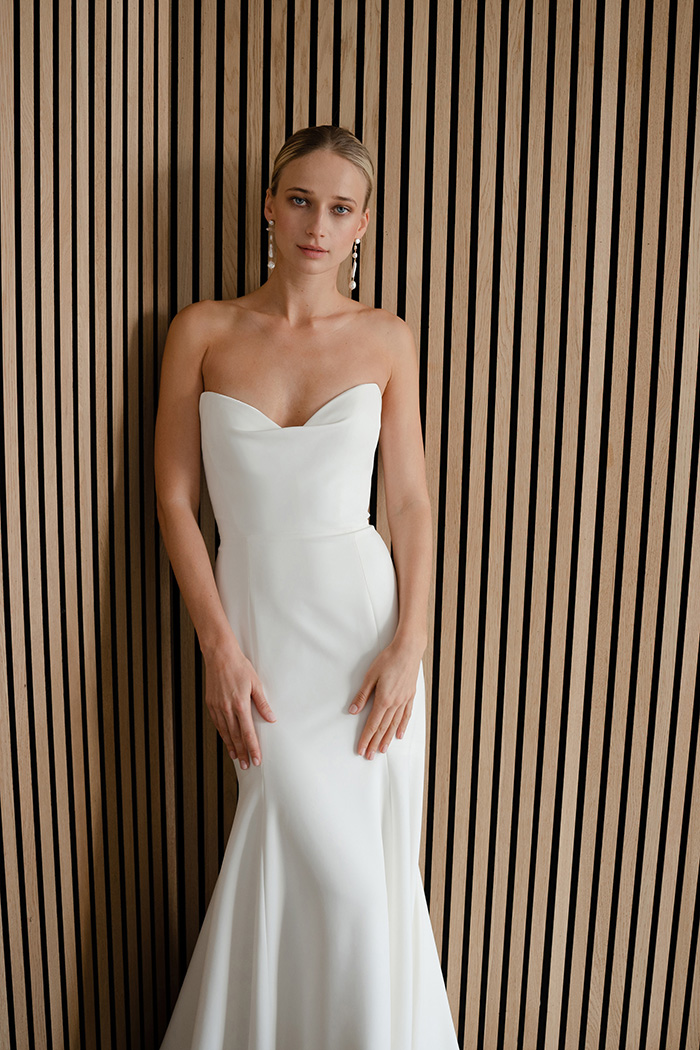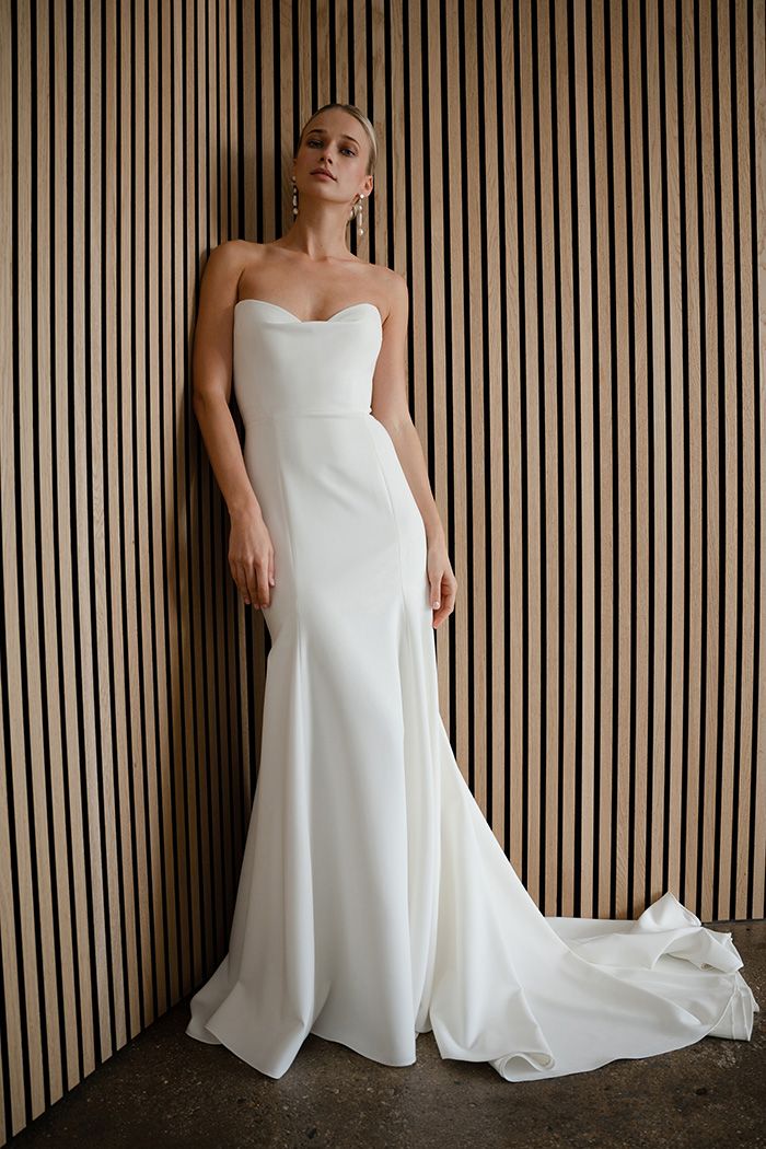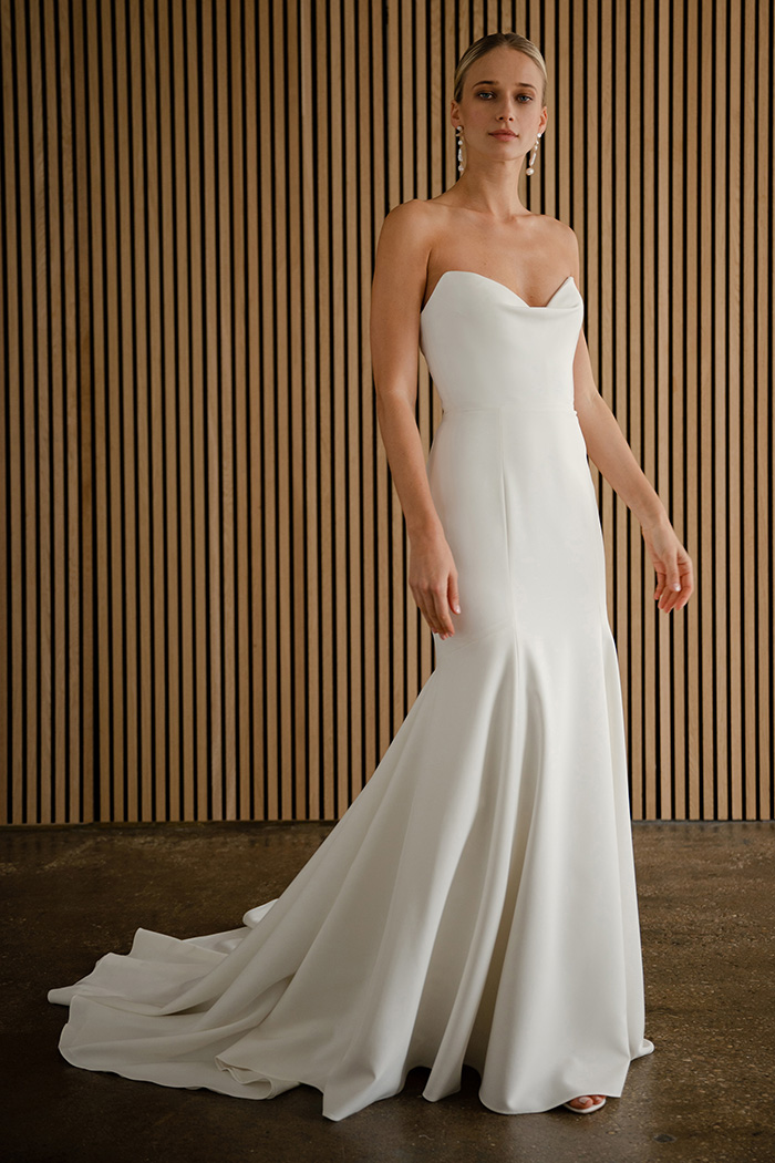 The Watson gown adds thoughtful modern details to a classic fit and