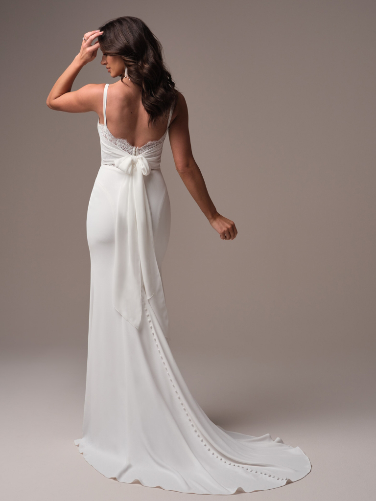 Vintage-inspired simple square neck bow sheath wedding dress
